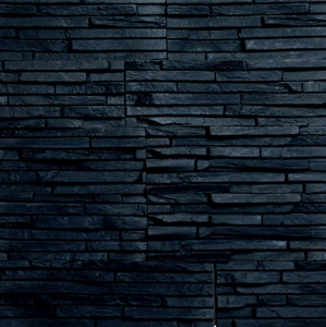 Panel de piedra prefabricada de 11.5×35-20×1-3cm perfecto para revestimiento en interiores o exteriores. Tonalidad negra.