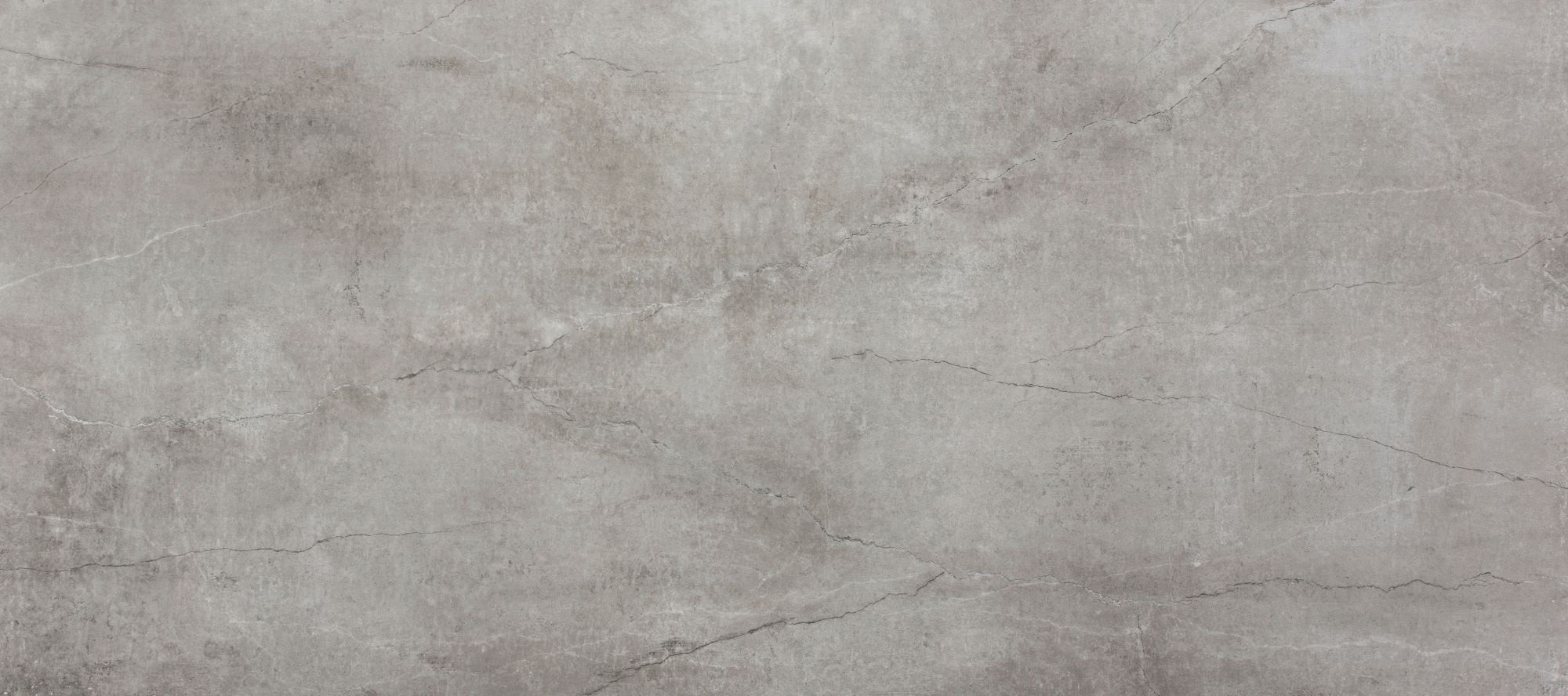 Placa de piedra sinterizada ultra compacta de 320x144x1.2 perfecto para cocinas, baños, pisos. Tonalidades grises con decorado de jaspeado negro tenue y líneas irregulares delgadas negras y blancas.